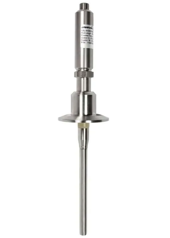 Anderson Negele NSL-M Probe type process level transmitter is the compact, high-temperature alternative to the NSL-F. Accommodates top-down, bottom-up and side mount installations. Measurement is temperature and pressure independent. Optional user interface MPI-200 allows field configurability of orientation, range, and signal output options.