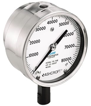 For offshore applications, the Type 1109 is available in various configurations, including dry and liquid-filled options, as well as the advanced PLUS!™ performance feature. This gauge is built to withstand the rigors of high-pressure environments, with pressure ranges reaching up to 100,000 psi, making it ideal for the waterblaster and waterjet markets.