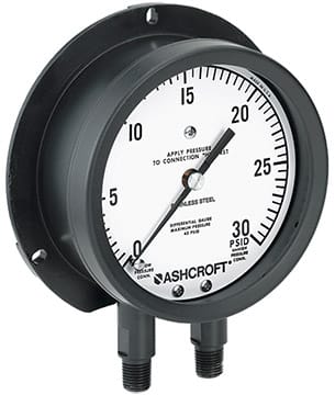 For processes that can corrode gauges with bronze or brass wetted components, it is essential to isolate the gauge from the corrosive environment. This can be achieved using capillary tubes, isolators, or diaphragm seals. However, when the process is compatible with 316 stainless steel, users have the option to choose from our reliable Types 1127 or 1128 differential pressure gauges.