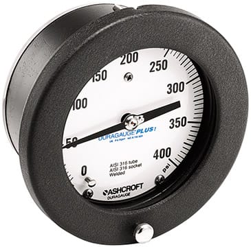 The Ashcroft 1377 Duragauge is equipped with a full-size 4.5 inch Bourdon tube. Its patented Duratube features an as-welded tube construction along with a “Round Cap tip” design, which effectively controls stress and extends the gauge’s lifespan. Additionally, the micrometer includes an adjustable pointer for precise readings.