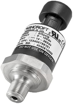 The Ashcroft G2 Pressure Transducer is engineered for precise gauge pressure measurement, offering a range from 30 to 20,000 psi with an accuracy of ±1.00% of span (total error band). For applications requiring compound pressure measurement, options are available from -14.7 to 300 psi.