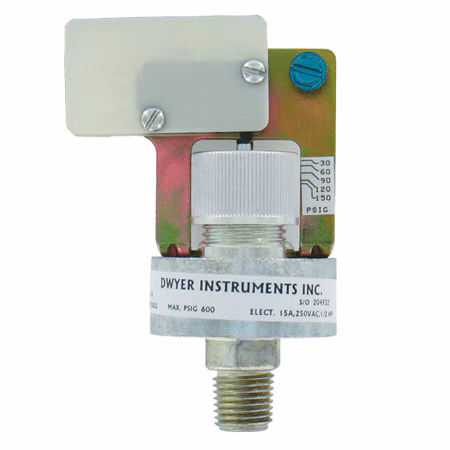 Series A1PS/A1VS Economical Pressure Switches are designed with a 15 Amp SPDT switch for direct control of pumps and motors. Available in pressure, vacuum, or compound ranges, the switches offer a field adjustable set point. Easily adjust the switch by aligning the top of the self locking adjusting nut with the desired setting indicated on the adjacent range scale. Connection is 1/4″ male NPT for quick installation and can be mounted in any position.