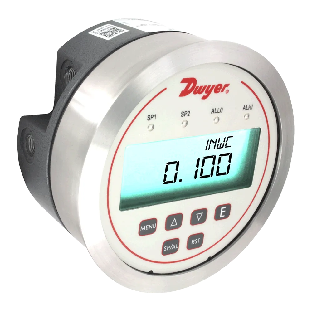 The Dwyer Series DH3 Digihelic® Differential Pressure Controller is a 3-in-1 instrument possessing a digital display gage, control relay switches, and a transmitter with current output all packed in the popular Photohelic® gage style housing. Combining these 3 features allows the reduction of several instruments with one product, saving inventory, installation time and money. The Digihelic® controller is the ideal instrument for pressure, velocity and flow applications, achieving a 1% full scale accuracy on ranges down to the extremely low 0.25″ w.c. to 2.5″ w.c. full scale. Ranges of 5″ w.c. and greater maintain 0.5% F.S. accuracy. Bi-directional ranges are also available.