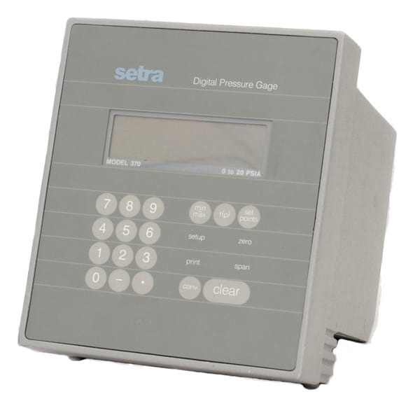 Setra Model 370 high-precision digital manometer is a multi-function measuring instrument with a microprocessor that combines Setra’s SETRACERAM™ sensing components, advanced digital circuitry, and proven firmware to achieve system accuracy of better than ±0.02. %FS. The Model 370 uses a 6-digit LCD display to display pressure and data. It can also output this data via a bidirectional EIA-232 interface. The function keys and numeric keys on the panel make it easy to convert engineering units and record minimum/maximum values. A value set the high and low alarm point and baud rate, perform calibration, etc. The above functions can also be completed through the communication interface. The Model 370 can output data in three different ways depending on the user’s needs; continuous output, intermittent output, output on request. The Model 370 also offers a choice of rechargeable battery packs, so it can be used not only as a laboratory instrument but also as a portable precision pressure gauge and field calibrator.